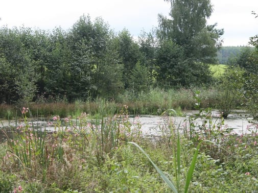 In der Nähe der kleinen Ortschaft Süß liegen gleich mehrere Grundstücke des LBV. Es sind dies die Irlwiesen (3,52 ha), die Mooswiesen (3,45 ha) und die Torwiesen (2,96 ha). Die Irlwiesen bestehen zu etwa je einem Drittel aus Erlenauwald, Mähwiesen und Altwassertümpeln. Insgesamt repräsentieren diese Lebensräume zusammen einen intakten Auwaldausschnitt, wie er für das Vilstal einst typisch war. Insbesondere Laubfrösche und andere Amphibien fühlen sich hier wohl. Die Mooswiesen bieten einen etwas anderen Aspekt einer flussnahen Landschaft: hier dominieren Seggen das Bild. Man kann auch noch einen alten, jetzt verlandeten Flussabschnitt erkennen. Insbesondere der Biber weiß das üppige Grün zu schätzen. Die Torwiesen gehörten zu den ersten Grundstücken, die die LBV- Kreisgruppe in den frühen 80er Jahren des letzten Jahrhunderts erwerben konnte. Im Rahmen der Flurbereinigung ging dieser wertvolle Erlenbruchwald in die Hände der Naturschützer über. Insbesondere die fehlende forstwirtschaftliche Nutzung tragen zum besonderen Charakter dieser FFH – Fläche bei. Außer den Erlen wachsen hier auch noch Weiden und ein dichter Schilfbestand. Foto LBV